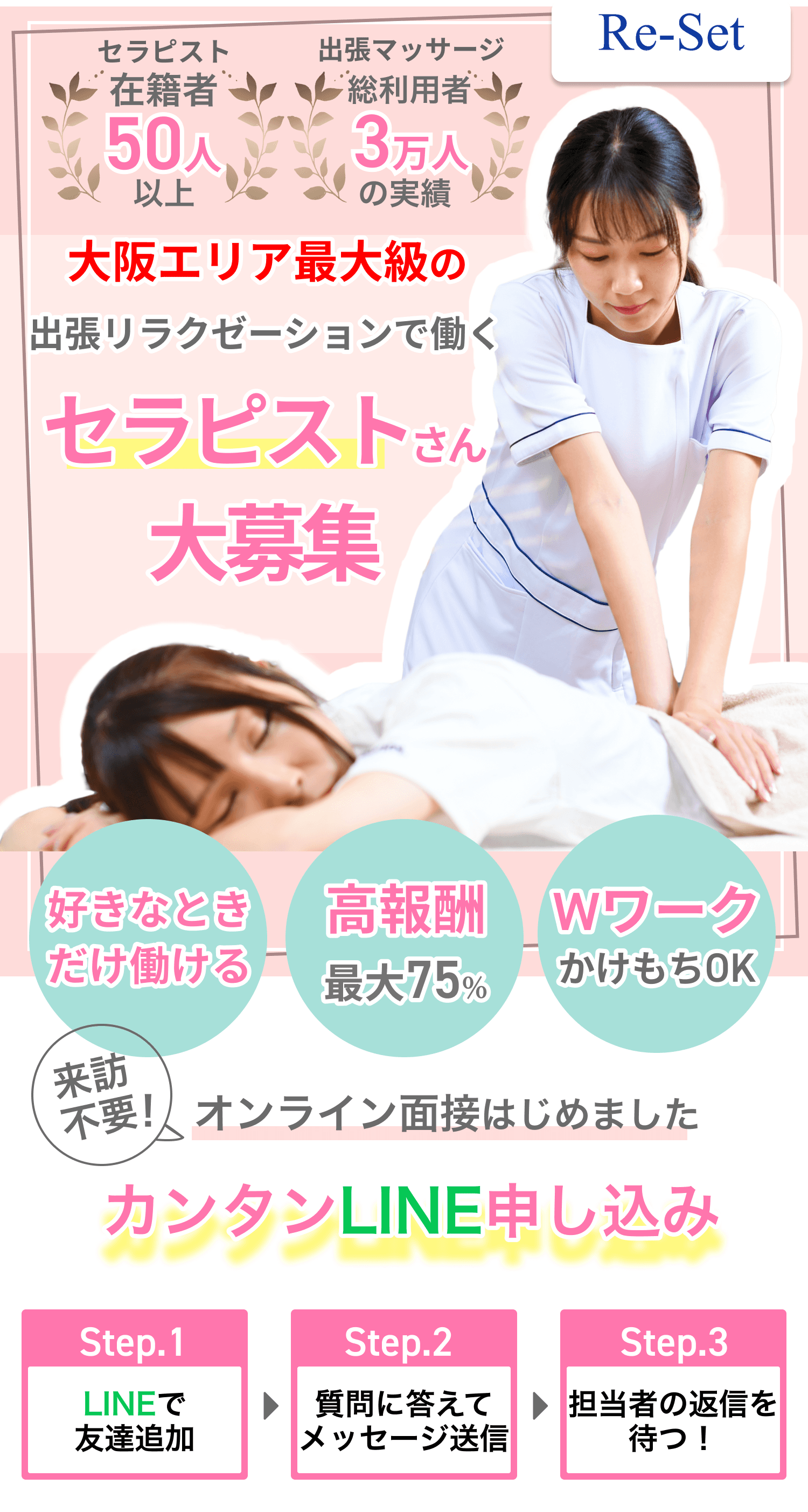 お客様にリラクゼーションマッサージで癒しを提供するお仕事です。